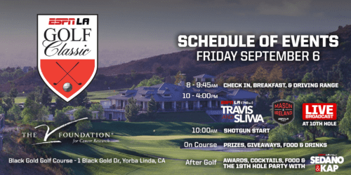 The So Cal Hyundai ESPN LA Golf Classic presented by Coors Light is an opportunity to play golf at a beautiful course, meet ESPN LA Radio personalities, witness a live broadcast, enjoy breakfast and a catered lunch, and a post-round reception complete with food, drinks, and amazing raffle prizes. But most important, the ESPN LA Golf Classic raises money for a cause dear to the hearts of millions, The V Foundation for Cancer Research ®
